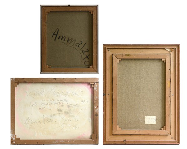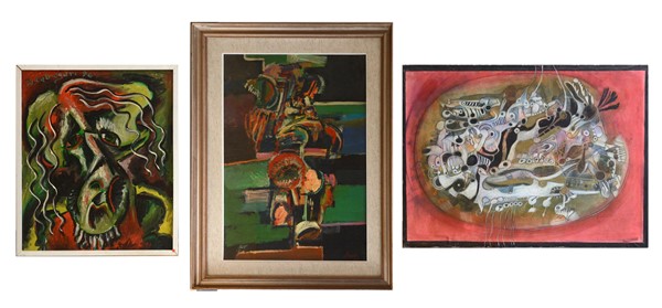 Lotto composto da tre dipinti olio su tela di soggetto astratto, autori e misur