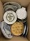 Lotto di due cartoni contenenti numerosi piatti e oggetti per la tavola in ceramica di manifatture differenti (difetti)