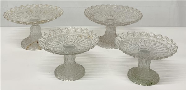 Lotto composto da quattro alzate in cristallo molato a bordo traforato di misur