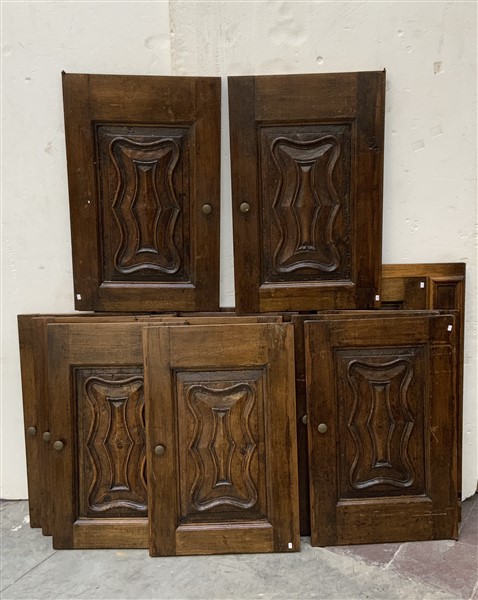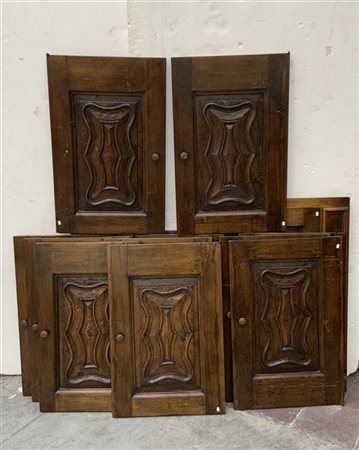 Gruppo di tredici sportelli con pannelli intagliati costruiti con elementi anti