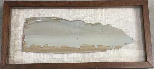 Frammento di pietra paesina (l cm 28), in cornice (difetti)