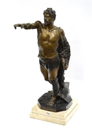 Ignoto "Gladiatore - Ave Caesari morituri te salutant" scultura in bronzo (h cm 65) poggiante su base in marmo