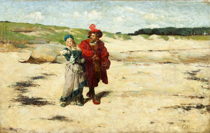 CABIANCA VINCENZO (ATTRIBUITO) "Passeggiata" 52x76 olio su tela Opera firmata...