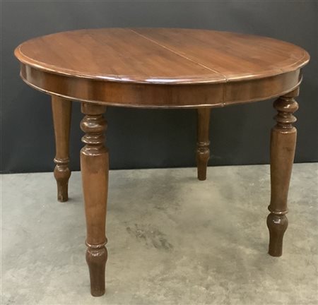 Tavolo con piano tondo allungabile, gambe tornite (cm 118x80)(Munito di due prolunghe) (difetti)