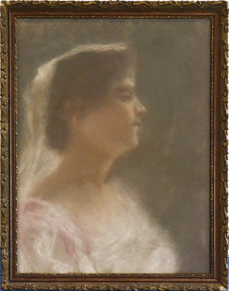 (Atribuito) "Ritratto femminile" pastelli colorati su carta (cm 50x35) In cornice (difetti)
