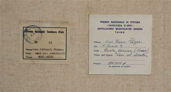Pagani, "Case nel varesotto", olio su tela (cm 50x70) firmato e datato in basso a destra (etichette a retro)