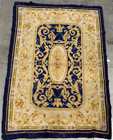 Tappeto annodato a mano in lana, Austria, metà XX secolo. Decoro d'ispirazione francese (cm 265x170) (difetti e rotture)