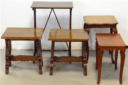 Lotto di cinque tavolini di fatture e dimensioni differenti (difetti)