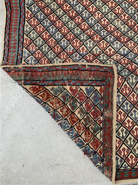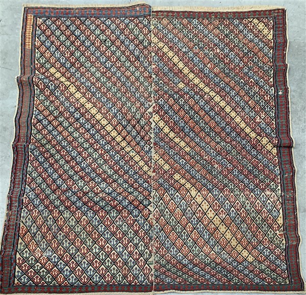 Tappeto Kilim, Persia, secolo XX. Realizzato in due teli con decoro geometrico (cm 180x170) (difetti, rotture e rapature)