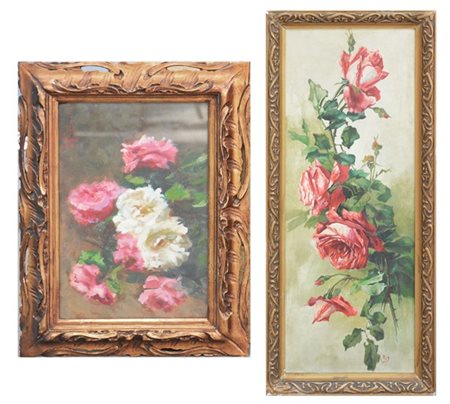 Lotto di due dipinti ad olio raffiguranti "Rose" autori e misure differenti. In