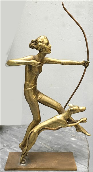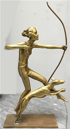 "Diana Cacciatrice" Scultura tutto tondo in bronzo. Italia, secolo XX. (difetti