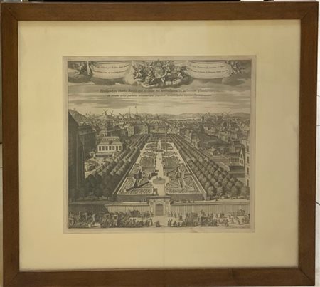 Aveelen, Jan Van Den - Veduta dei giardini del Palazzo Reale di Stoccolma (1700), in cornice (cm 47x55) (difetti)