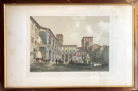 Gruppo di sette stampe a colori raffiguranti monumenti e scorci urbani (cm 37x5