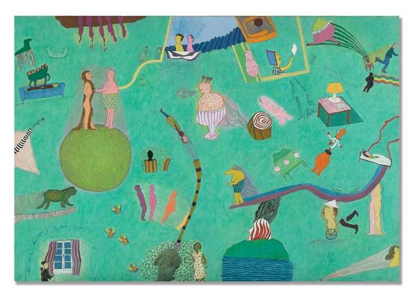 Jan Voss "Effrayantes frequentations" 1965 olio su tela cm 89x129,5 Firmato e da