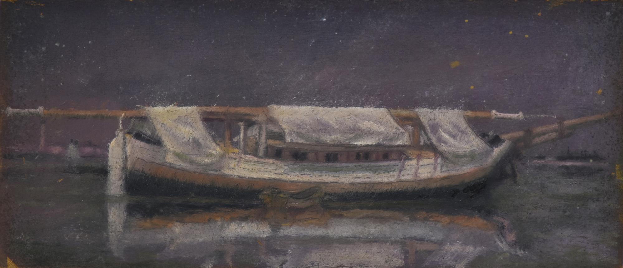 Anonimo BARCA DI NOTTE olio su cartone, cm 13,5x30