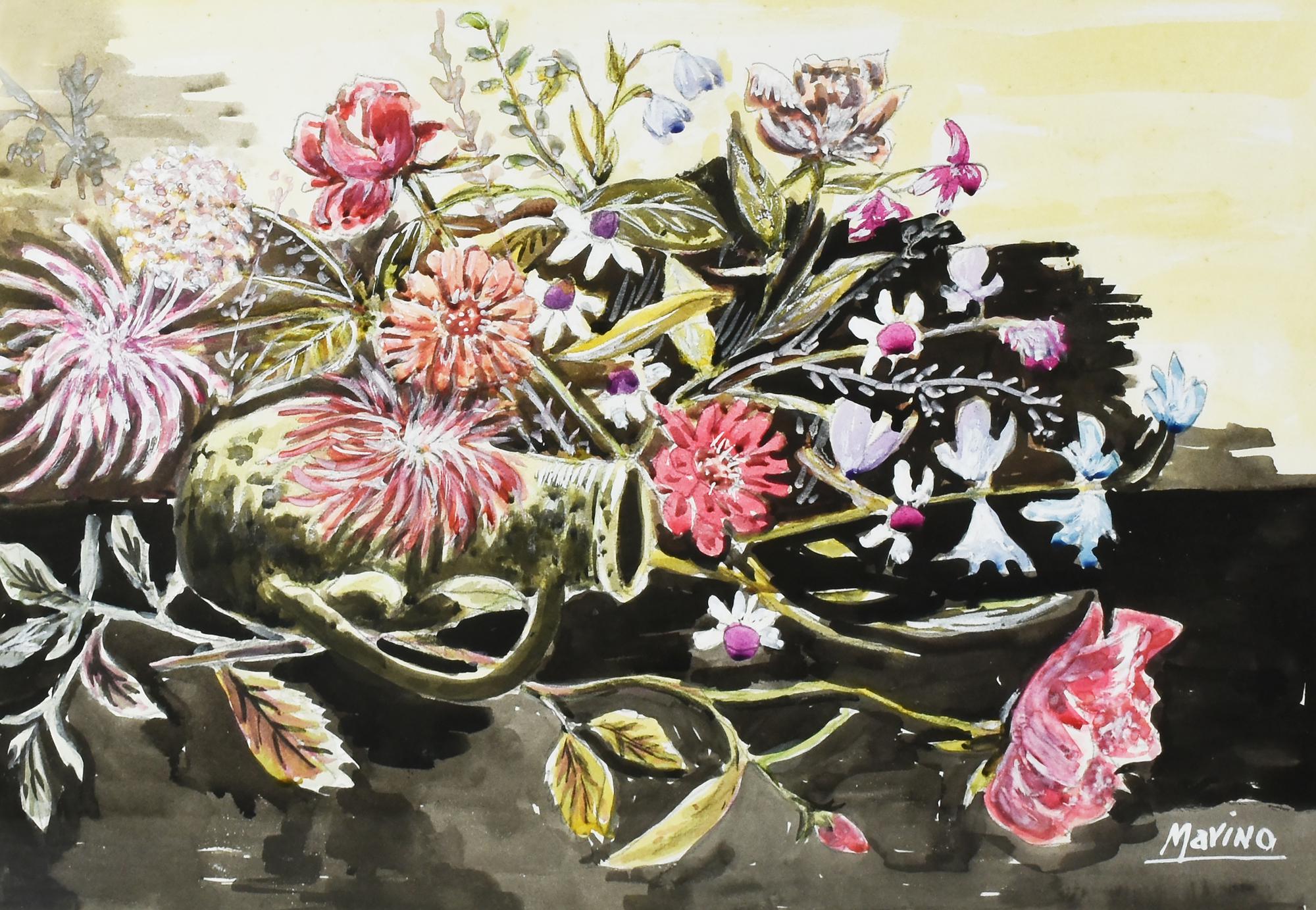 Marino COMPOSIZIONE FLOREALE tecnica mista su carta, cm 35x52 firma