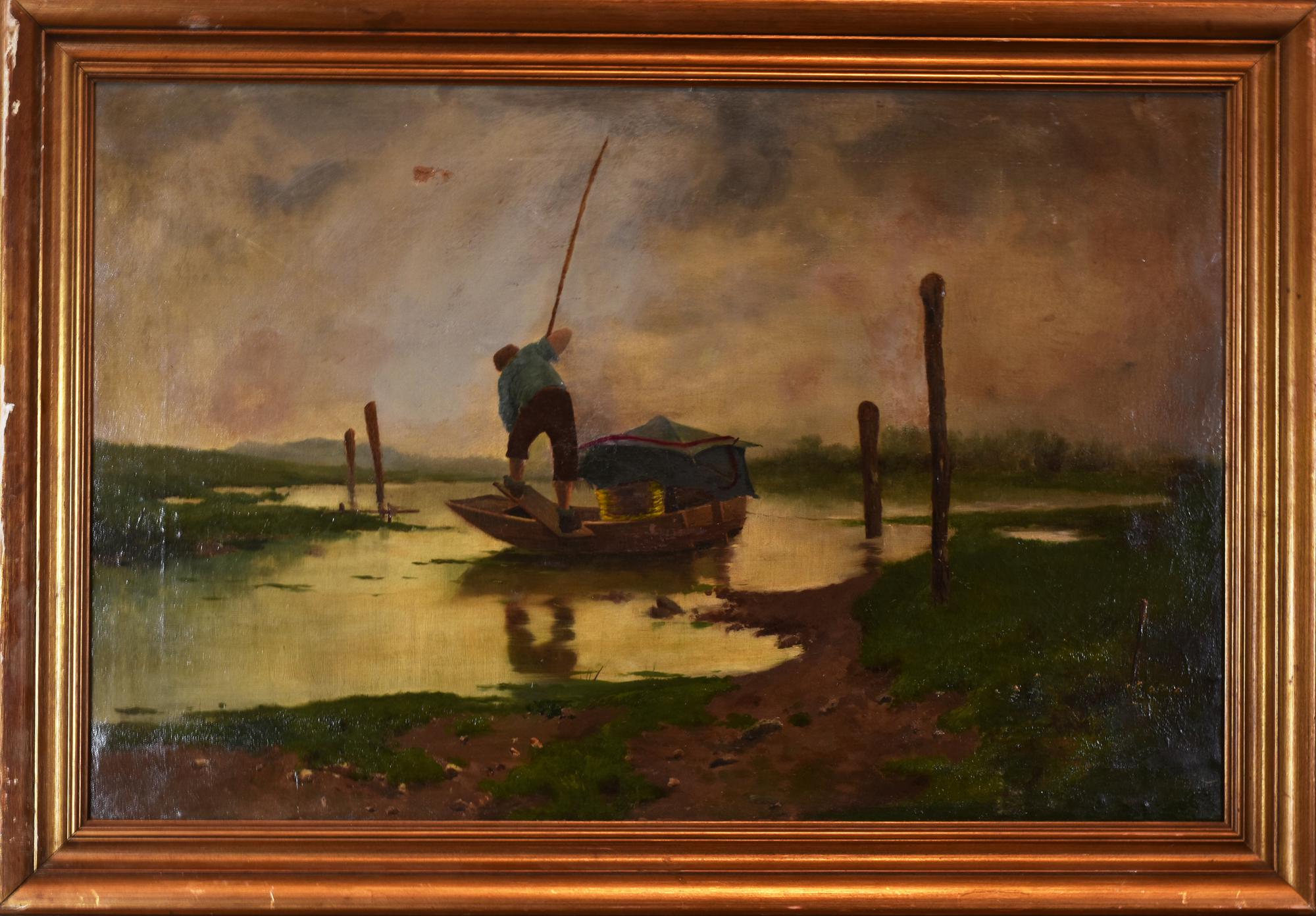 Anonimo LA PESCA SUL LAGO olio su tela, cm 50x77 L'opera presenta restauri,...