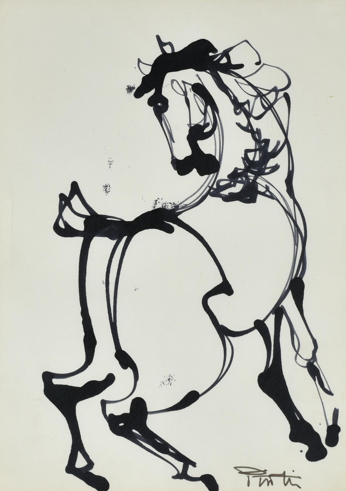 Paolo Pisotti CAVALLO china su carta, cm 35x25 firma