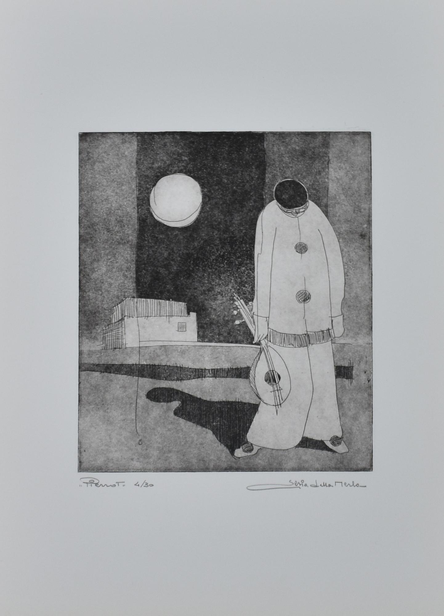Gianni Sesia della Merla PIERROT incisione su carta, battuta cm 27x21; su...