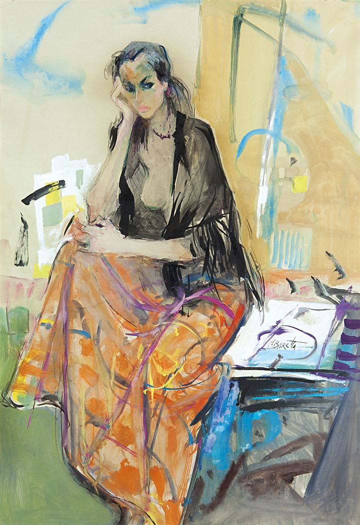 BARETTA MICHELE Vigone (TO) 1916 - 1987 "Modella" 70x50 tecnica mista su...