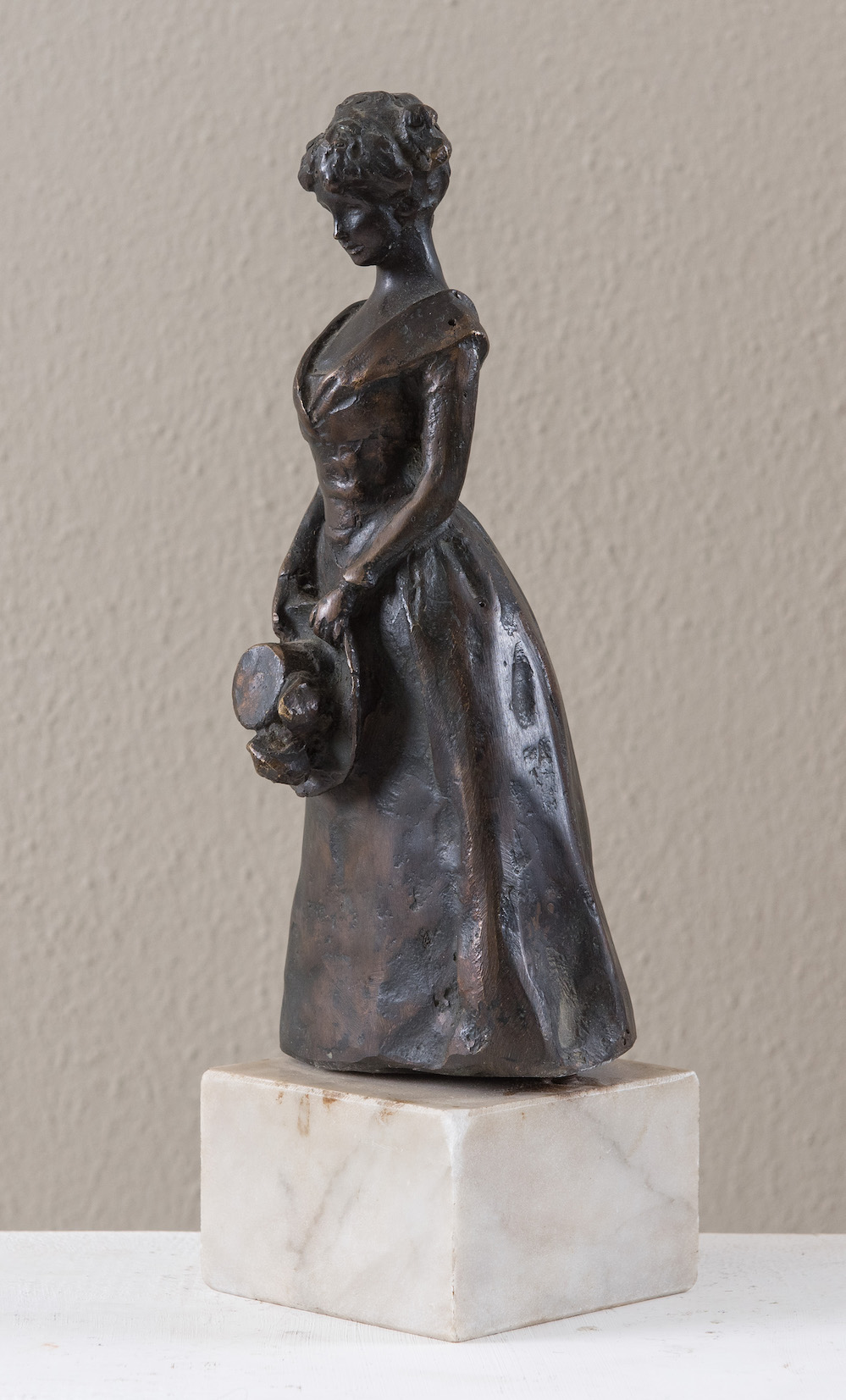 J. DONE', attr. “Fanciulla”. Scultura in bronzo su base in marmo. Cm 22,5. Opera firmata alla base J. Donè.