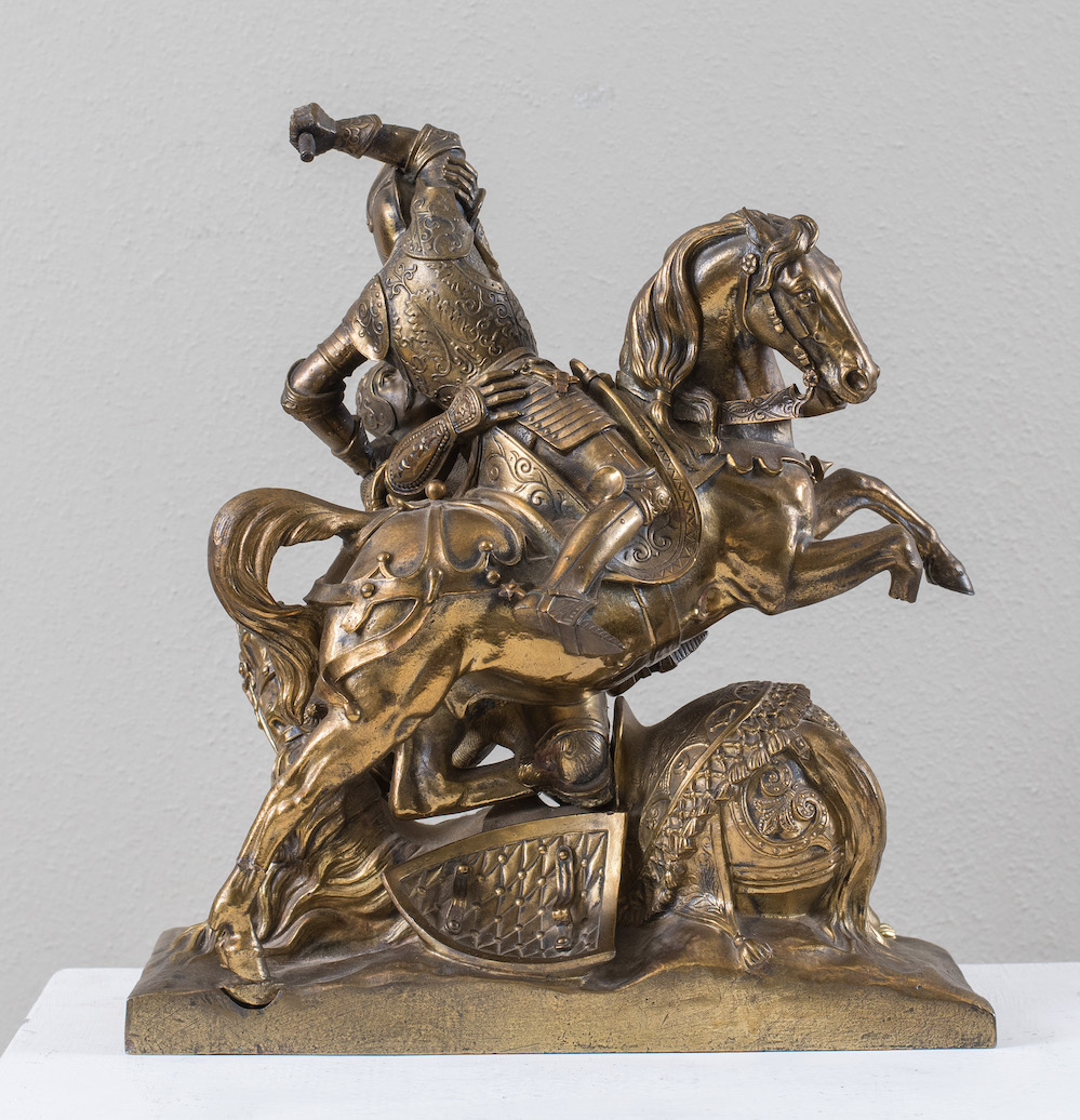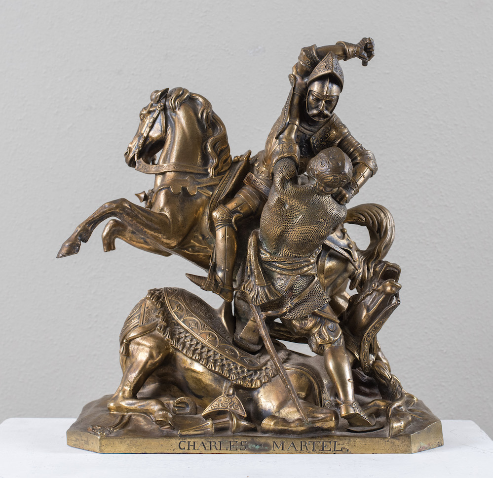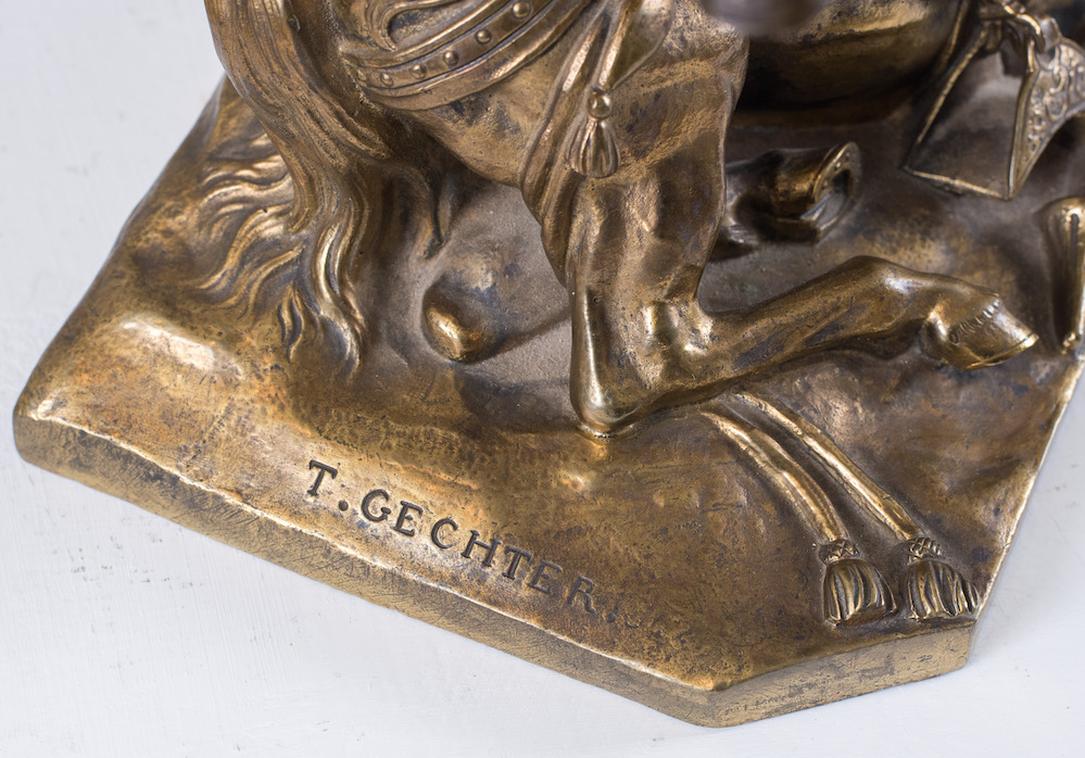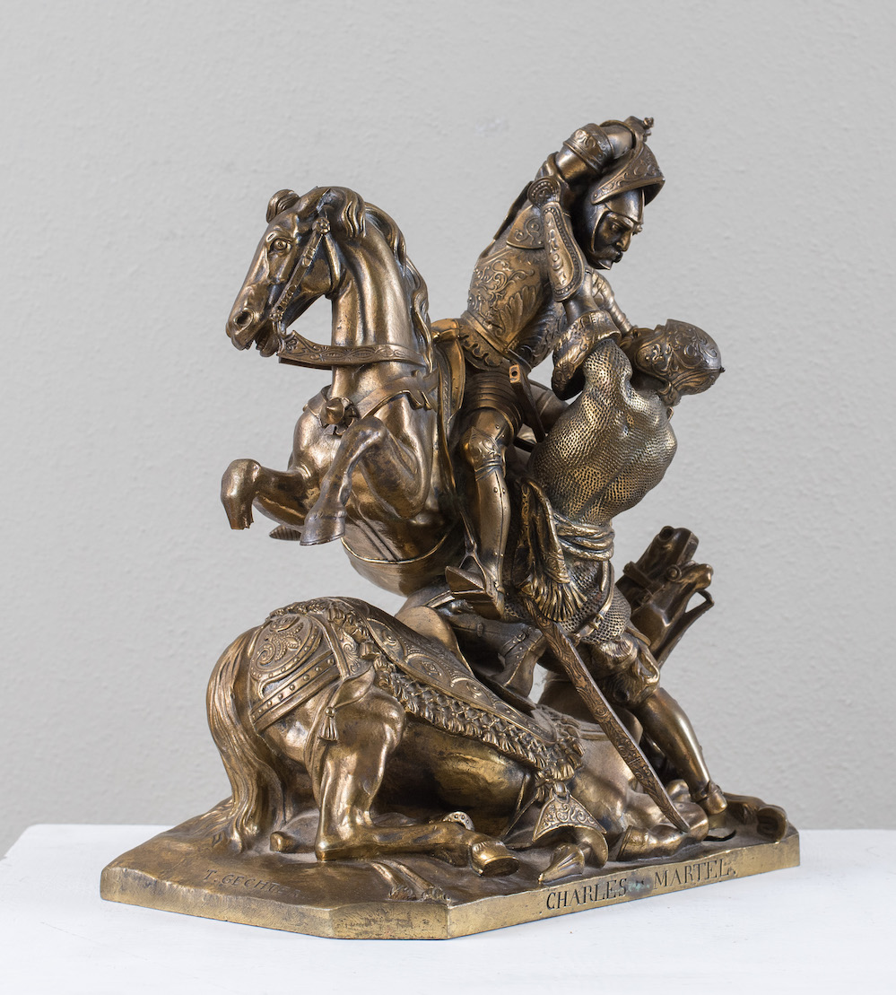 TEODORE GECHTER (1796 - 1844) "Il combattimento di Carlo Martello e Abdérame, re dei Saraceni". Scultura in bronzo. Francia, XIX secolo. Cm 33x29x18. Opera firmata T. Gechter. (difetti e mancanze).