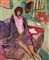 CHICCO RICCARDO Torino 1910 - 1973 "Interno con figura" anni '70 60x50 olio...