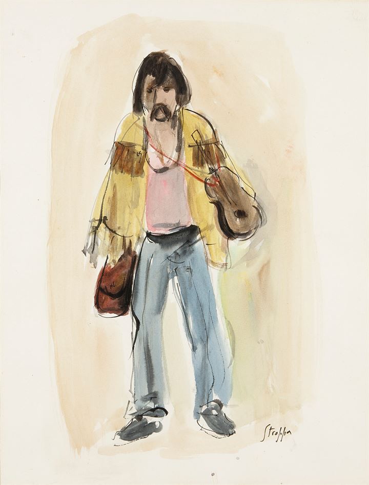 STROPPA LEONARDO Torino 1900 - 1991 "Suonatore di violino" 42x31 acquerello...