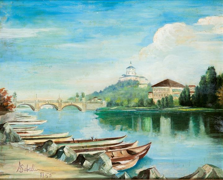 SICBALDI ADRIANO Bottrighe (RO) 1911 - 2007 Torino "L'imbarcadero al Po,...