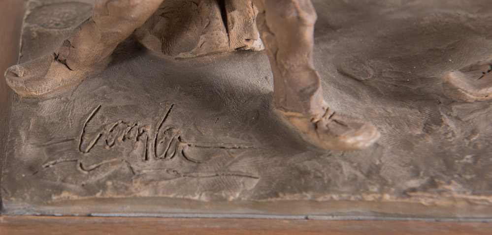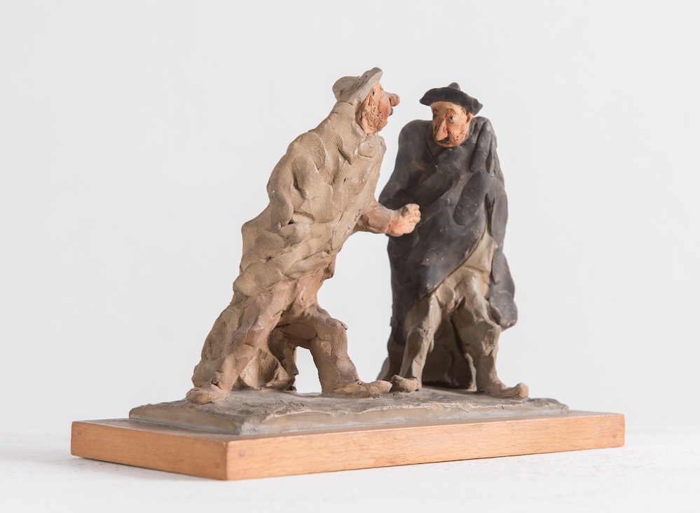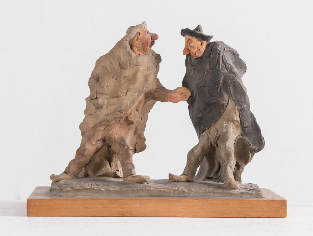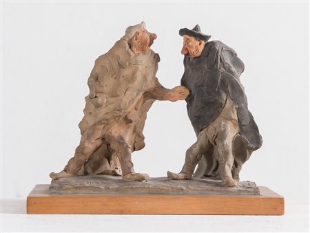 CLETO TOMBA (Castel San Pietro Terme 1898 - Bologna 1987) "Conversazione". Scultura in terracotta policroma. Cm 15x19,5x10,5. Opera firmata alla base Tomba. Reca marchio a fuoco CT. Provenienza: importante collezione privata, Bologna.