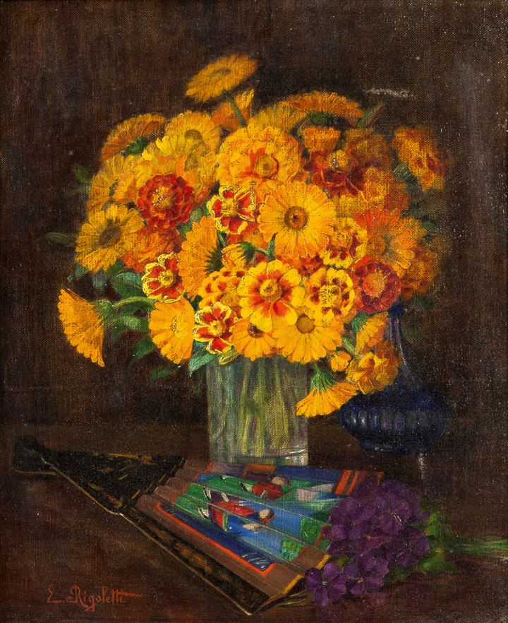 RIGOLETTI ELENA "Fiori" 31x37 olio su tela Opera firmata in basso a sinistra