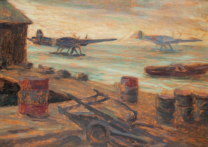 TERZOLO CARLO Incisa Scapaccino (AT) 1904 - 1975 Torino "Idroplani in attesa...