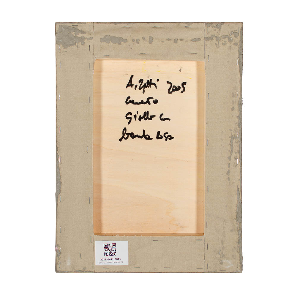 Firmato, datato e titolato al verso: A Rapetti 2005 cemento giallo e banda rosa