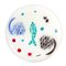 Grande piatto con decorazione policroma con elementi geometrici e figura di clown.