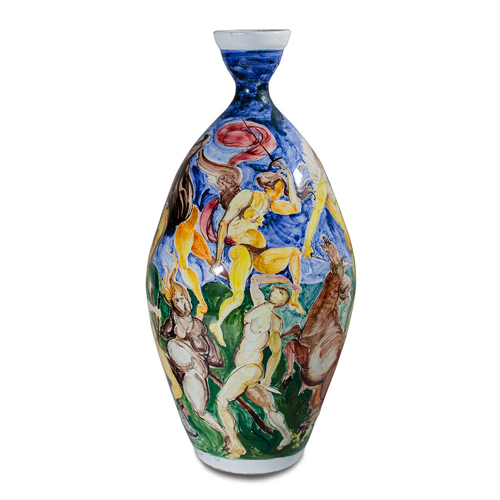 Vaso in ceramica dipinta con scena mitologica, anni ‘50.