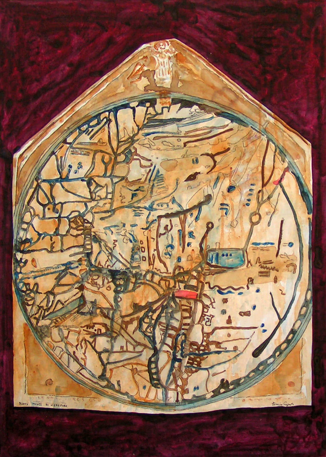 Tonino Caputo, "Mappa Mundi di Chereford", 2019, tecnica mista, 70x50 cm