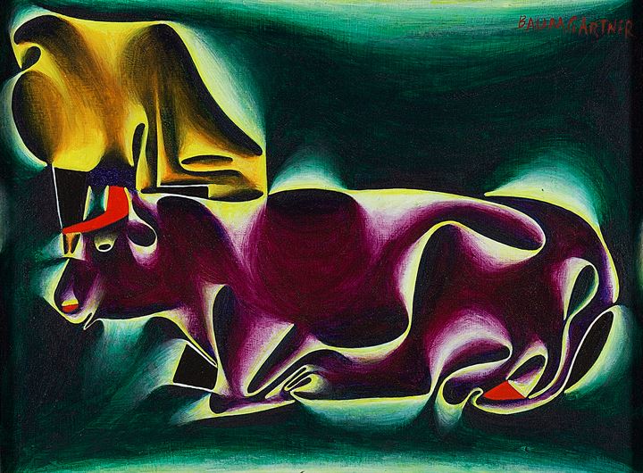 BAUMGARTNER FRITZ A 1929 - 2006 "Eifelkuhe (Mucche)" 1994 30x40 olio su...