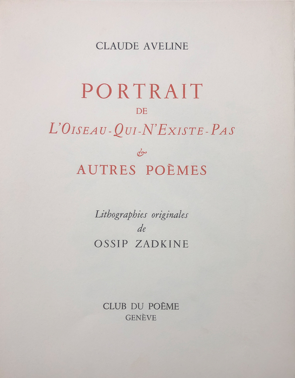 EDIZIONI D'ARTE (ZADKINE) - Portrait de l'oiseau-qui-n'existe-pas & autres poèmes, 1965