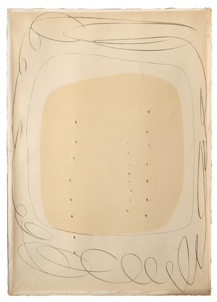 Lucio Fontana "Concetto spaziale n. 5" 1960 litografia con buchi cm 70x50 Firmat