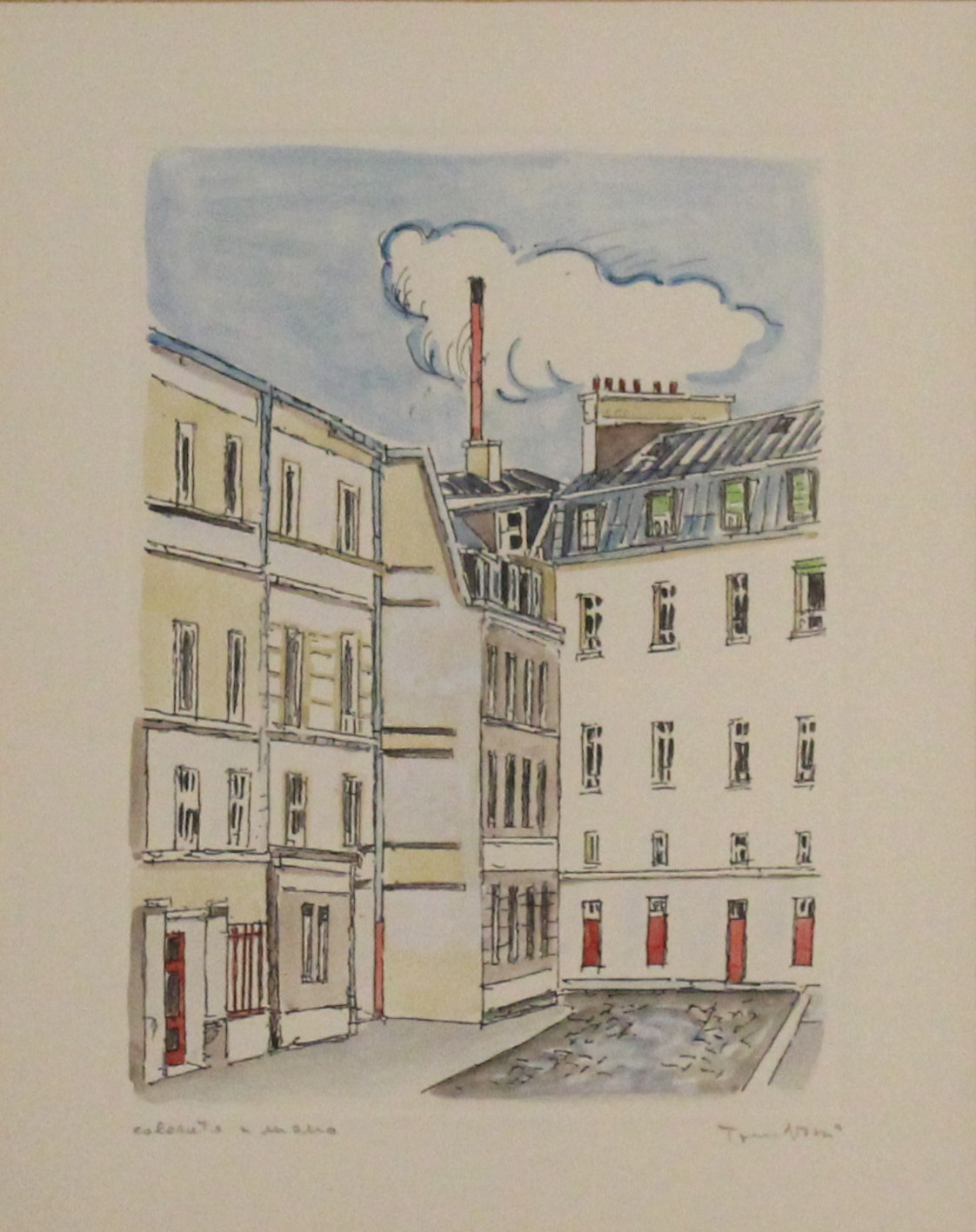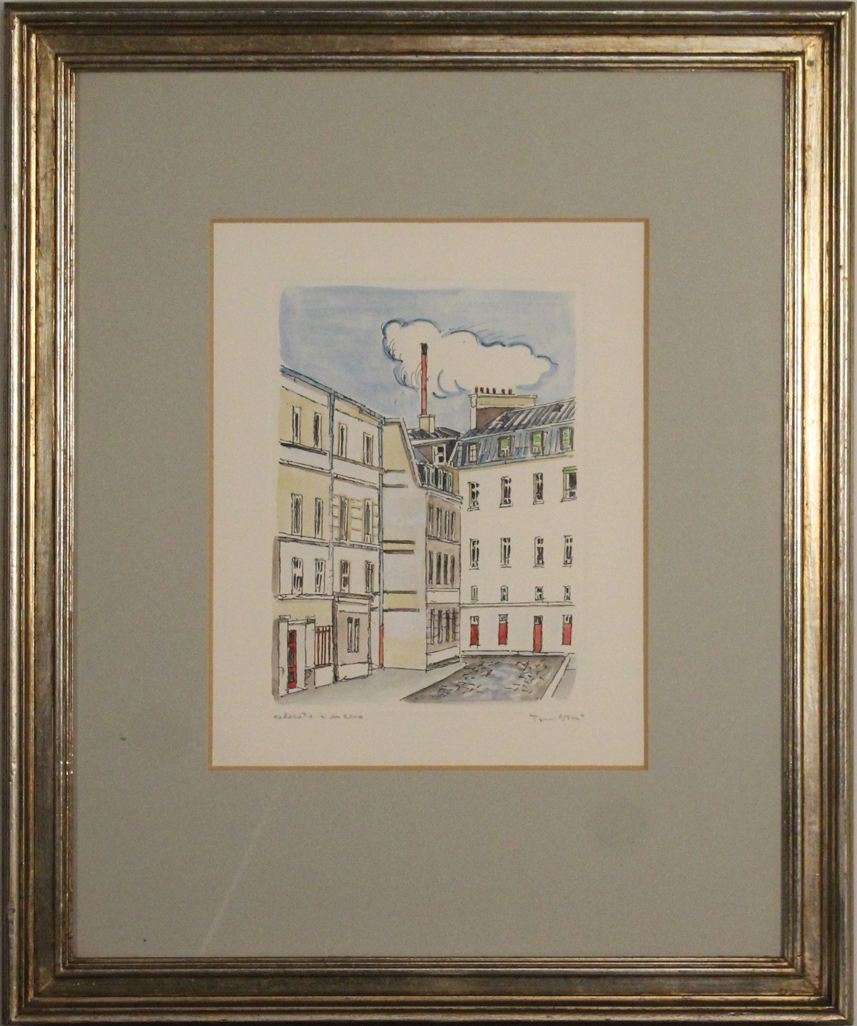 Incisione su cartoncino colorata a mano
