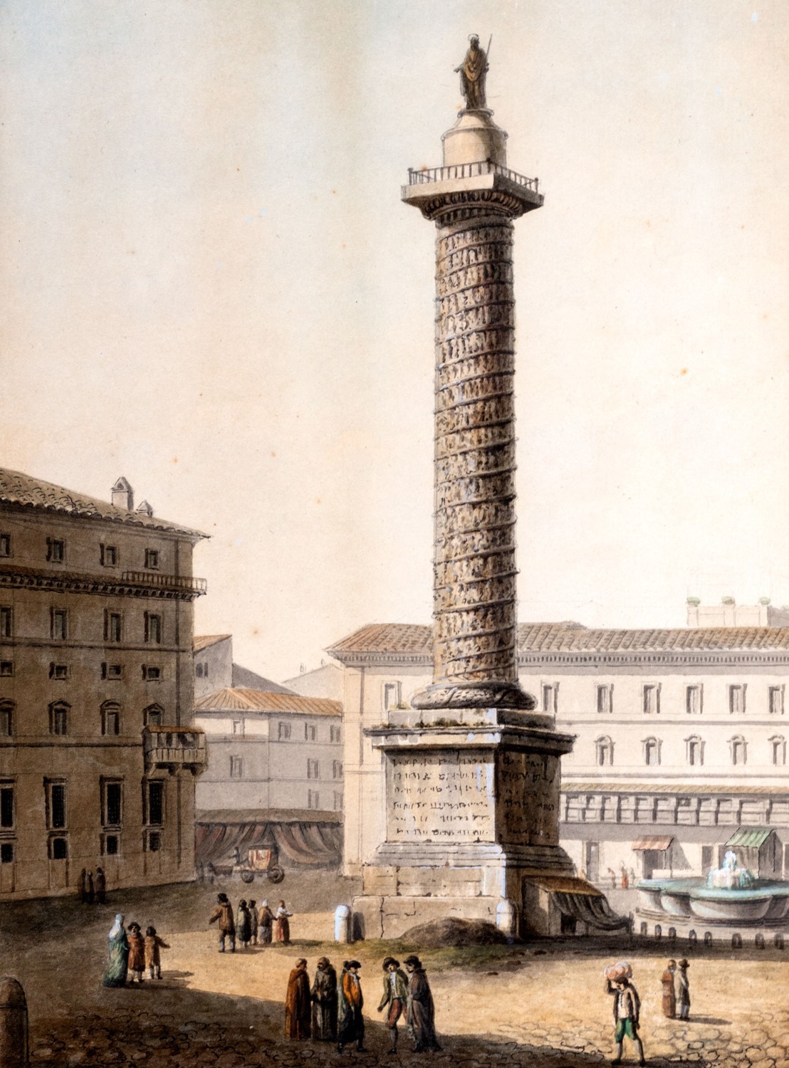 Simone Pomardi (Monteporzio 1757-Roma 1830) - Due vedute di Roma: la Colonna Traiana; e la Colonna Antonina