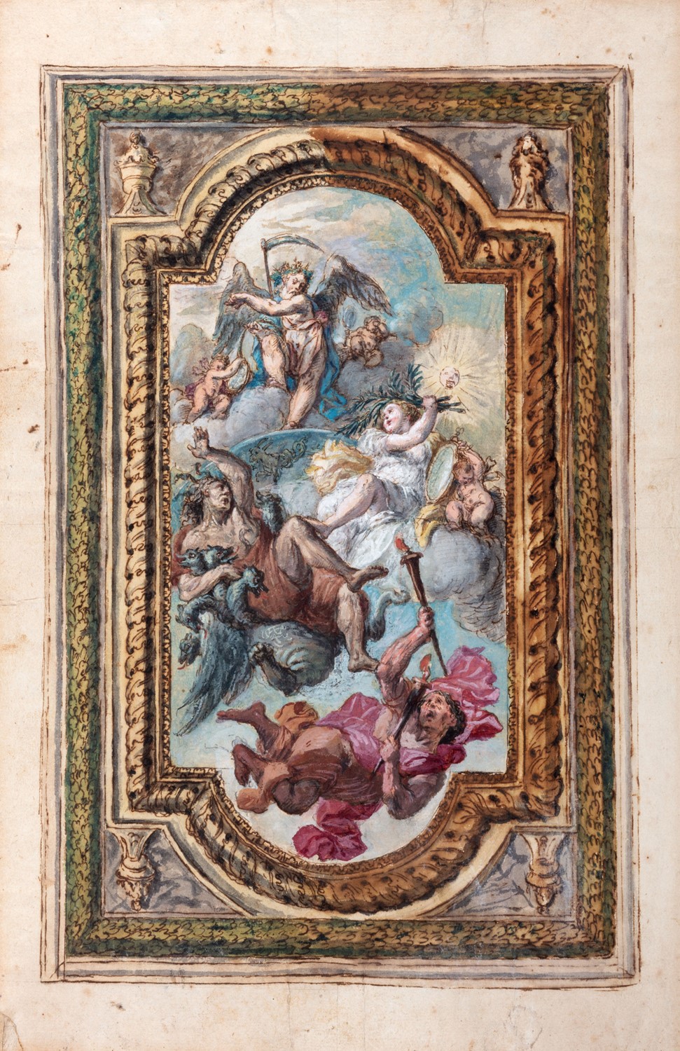 Scuola toscana, prima metà del secolo XVIII - Studio per soffitto con Allegoria del trionfo del Tempo, entro cornice archiettonica
