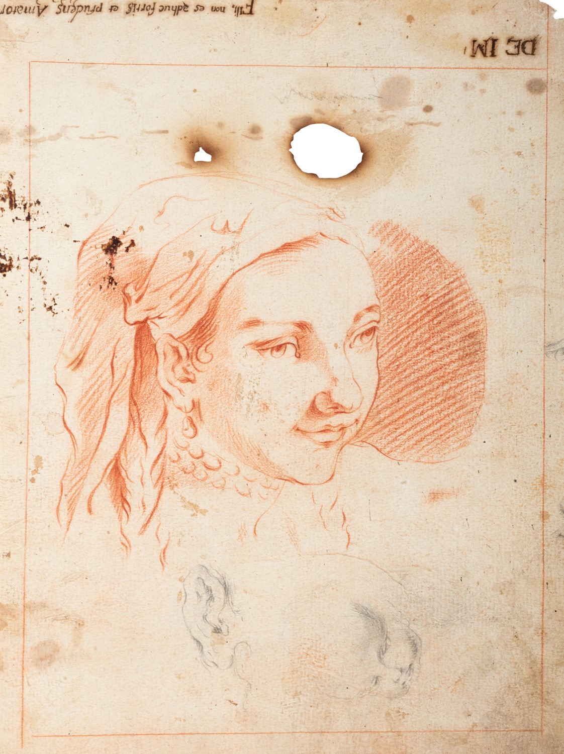 Scuola veneta, secolo XVIII - Testa di giovane donna con fazzoletto e studio di bimbo
