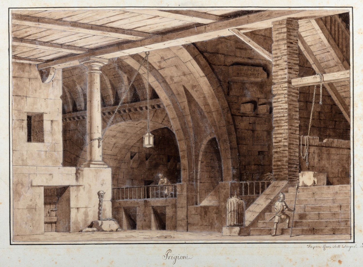 Gaspare Rossi Scotti (Perugia 1800-- 1864) - Interno di una prigione