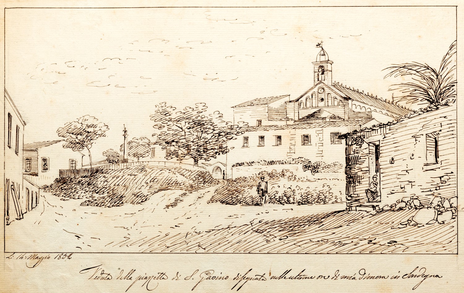 iscrizione lungo il margine inferiore li 14 maggio 1832/ Veduta della piazzetta di S. Gavino disegnata nelle ultime ore di mia dimora in Sardegna