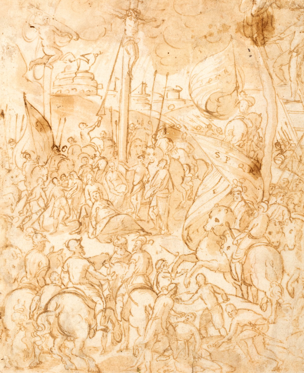 penna, inchiostro e acquerello bruno su carta controfondata