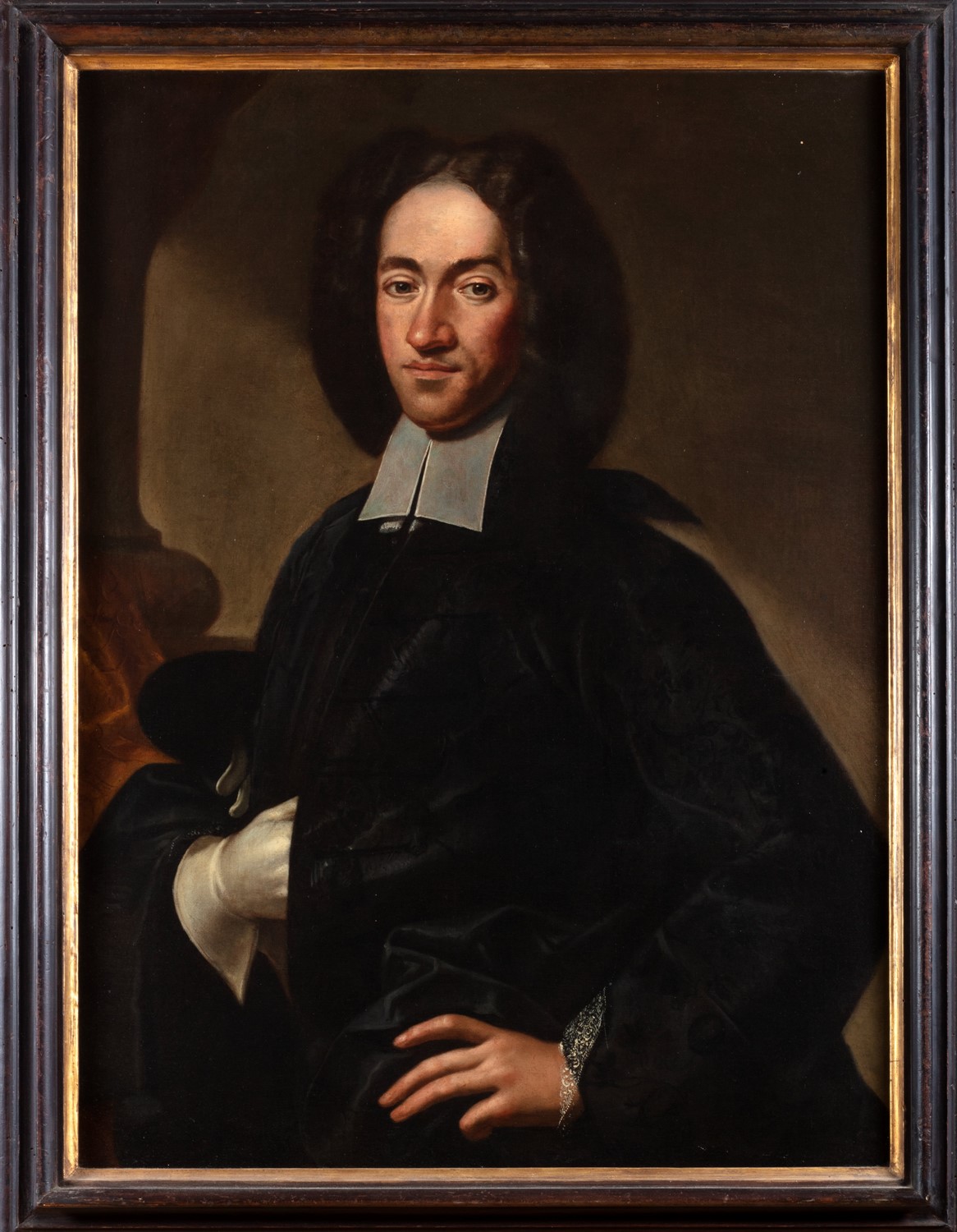 Sebastiano Bombelli (Udine 1635-Venezia 1719) - Ritratto di gentiluomo a mezzo busto, in abito scuro damascato
