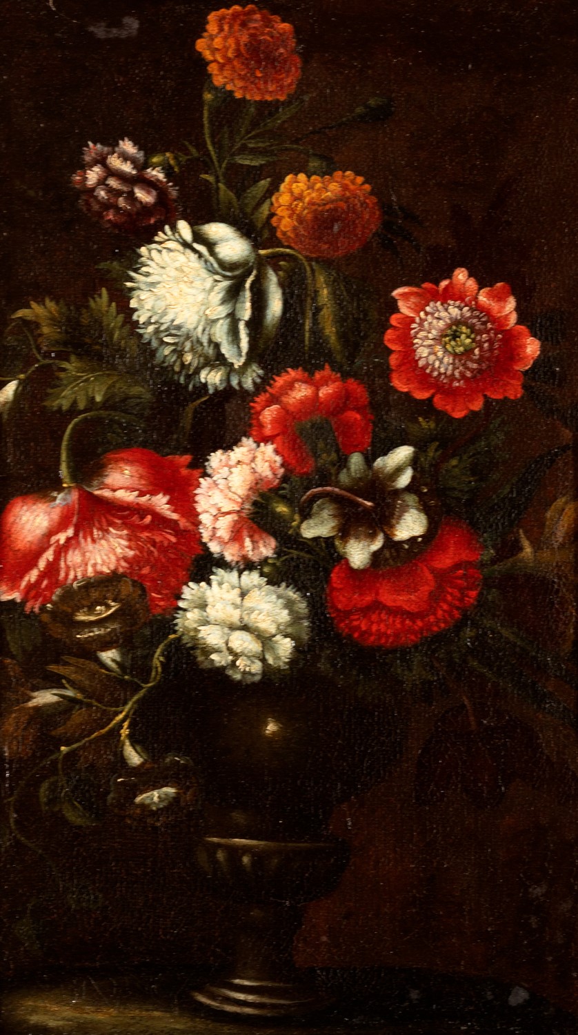 Scuola italiana, secolo XVII - Natura morta con fiori in un vaso