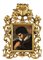 entro importante cornice a cartoccio, in legno intagliato e dorato