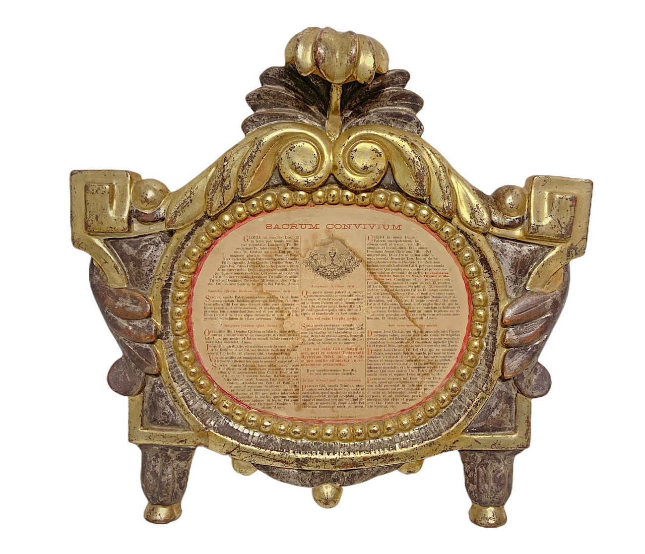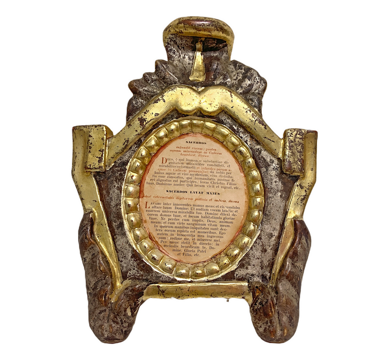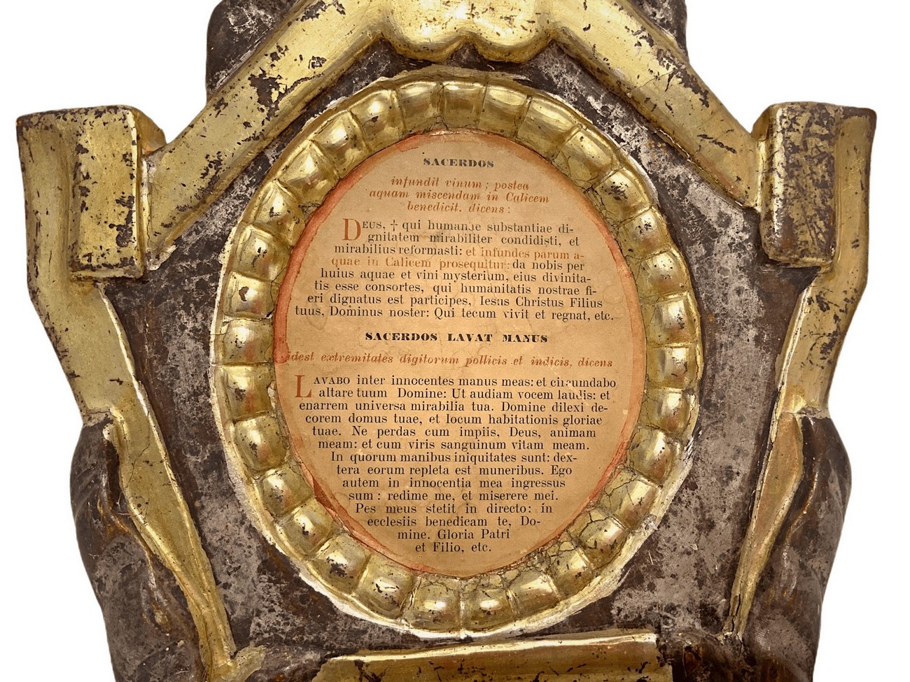Trittico cartaglorie in legno dorato e argentato a foglia, inizi secolo XIX. Grande cm 45x49, piccole cm 30x23